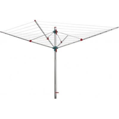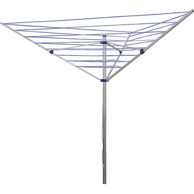 4 ramenný venkovní sušák se stabilní hliníkovou konstrukcí, která je odolná vůči povětrnostním vlivům a korozi, délka šňůr 50 m, kapacita 5 praček prádla, max. váha prádla k zavěšení 30 kg, délka úhlopříčky sušáku 2.5 m (š 1.75 x 1.75 m), včetně držáku pro zabetonování...
