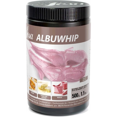 SOSA Textura Albumina - prášek (bílkový protein) 500g Textura Albumina-prášek-bílkový protein. Vlastnosti: vaječná bílkovina, použití: míchejte v chladu s jakýmkoliv druhem kapaliny. Poskytuje o 25% více pěny a je pětkrát stabilnější než čerstvý vaječný...