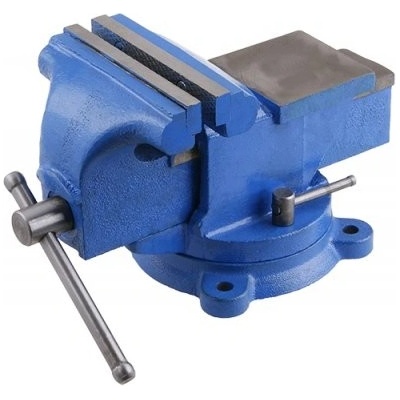 Otočný dílenský svěrák s čelistmi z vysoce kvalitní oceli kalenými na 45 HRC ± 5 HRC. Horizontálně otočná základna. Litinové tělo s opracovanými upínacími čelistmi a...