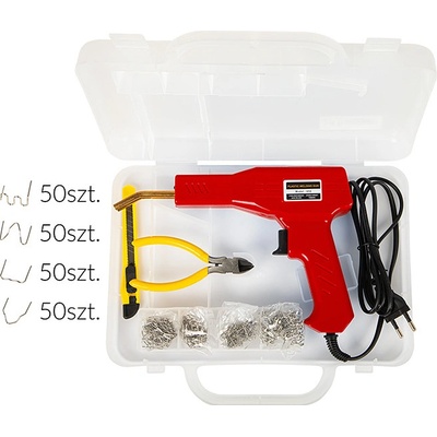 Elektrická svářečka plastů pro opravu prasklin plastových výrobků pomocí kovových sponek. Sponka se zataví do plastu a spojí prasklinu, pro uhlazení spoje slouží přiložený vyhlazovací nástavec, který taví a uhlazuje plastové spoje. Dodáváno v kufru. včetně 400 ks...