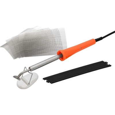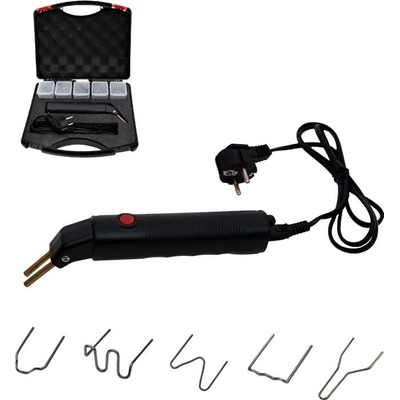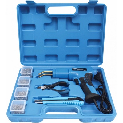 Kompaktní svářečka plastů. Sada obsahuje 200 ocelových sponek na plast (4 druhy, po 50 kusů) a ořezávač a kleště pro tvarování plastu. Vynikající sada určená k opravě...
