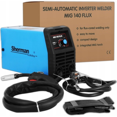 SHERMAN MIG 140 FLUX Značka: Sherman | Metody svařování: MIG | Napájení: AC 230V/50Hz | Svařovací proud: 100A | Účinnost: 60% STANDARDNÍ VYBAVENÍ: - Sherman Invertorová...