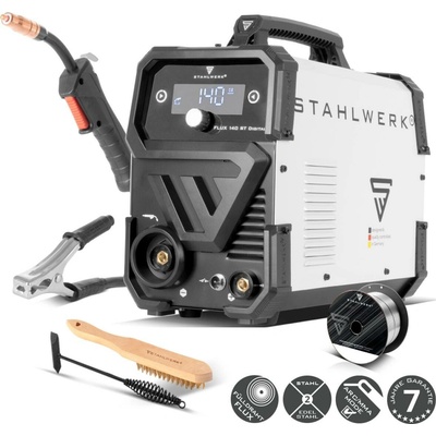 Svářečka FLUX 140 ST od STAHLWERK FLUX svářečka pro sváření plněným neboli trubičkovým drátem od Stahlwerku. Synergická mašinka ✅pro sváření metodou FCAW, MMA a LiftTIG. Svaříš...