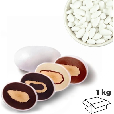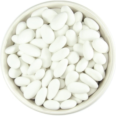 Svatební mandle obalené sladkou cukrovou polevou. rozměry: 3 x 1,5 x 1 cm balení: 1 kg (cca 280 mandlí) barva: bílá