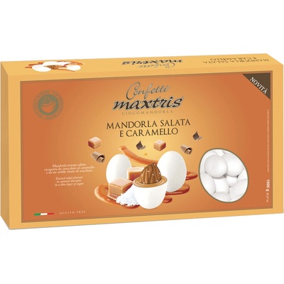 Barva : bílá Bezlepkový výrobek: ANO Neobsahuje palmový olej: ANO Obsah balení: 166 ks Slané pražené mandle pokryté čokoládou s příchutí slaného karamelu a tenkou vrstvou...