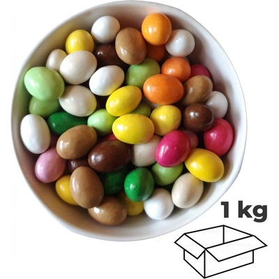 Skvělá pochoutka na dětskou párty, oslavu nebo svatbu. Různobarevné pražené mandle obalené v mléčné čokoládě v příchutích: kokos, lískový oříšek, jahoda, laté ,višeň , pomeranč...
