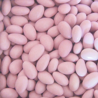Svatební mandle obalené sladkou cukrovou polevou. rozměry: 3 x 1,5 x 1 cm balení: 0,5 kg (cca 140 mandlí) barva: růžová