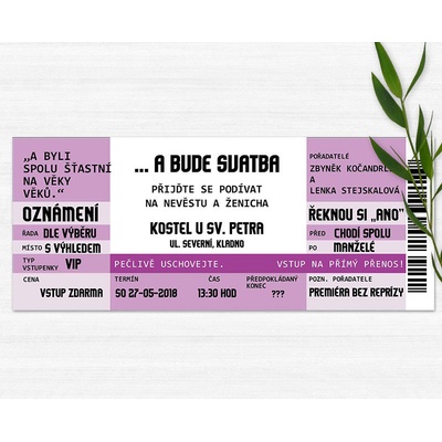 Vepíši váš text, který si budete přát. Rozměr 18 × 7 cm. - hotovou pozvánku obdržíte e-mailem - vytisknete si tolik kusů pozvánek, kolik chcete - pozvánku můžete přátelům rozeslat i elektronicky (e-mailem, mobilem) - neplatíte žádné poštovné - rychlé dodání -...