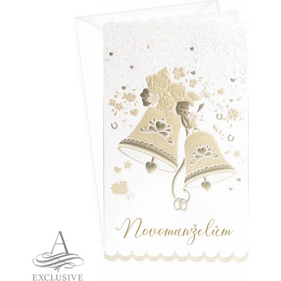 Přání s textem svatební s obálkou. Rozměr: 125 x 200 mm (ve složeném stavu)Text na přední straně:bez textuText uvnitř přání:Až se zvony rozeznějí,my Vám všichni budem přát,ať...