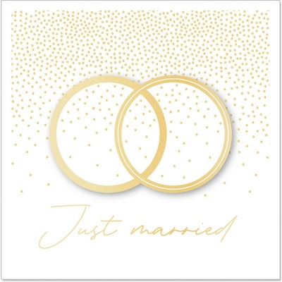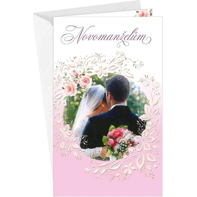 Svatební přání.* text uvnitř: "Milí novomanželé, prstýnky jste si vyměnili a slibem věrnosti manželství zpečetili... Ať pro Vás šťastný je každý z dalších dní, ať se Vám vyplní...