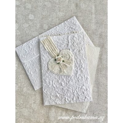 Jednoduché svatební přání z ručního papíru v čistém designu. Cena za 1 kus přání včetně obálky + 1 kus karty k napsání textu. Baleno do celofánu. - Druh ručního papíru:...