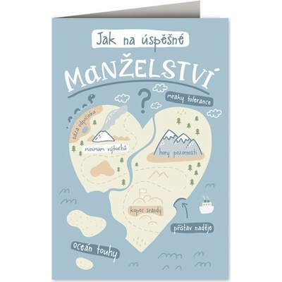 Originální svatební přání s obrázkem a receptem na úspěšné manželství pro novomanžele. Součástí balení je i obálka na přání. Materiál: papír Rozměr: 11,5 x 17 cm