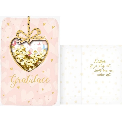 Text na přední straně přání: Gratulace Text uvnitř přání: Láska to je silný cit, život bez ní nelze žít. Přání je baleno v sáčku, součástí balení je i dopisní obálka. Rozměr:...