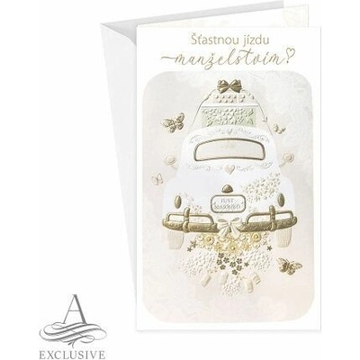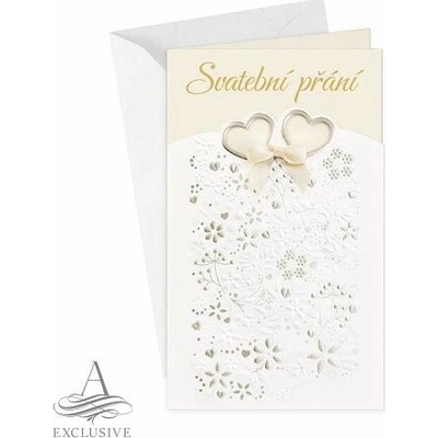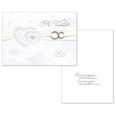 Svatební přání s textem uvnitř. Součástí přání je bílá perleťová obálka. Originální technologie zpracování od společnosti ARGUS - "Na detailu záleží!"