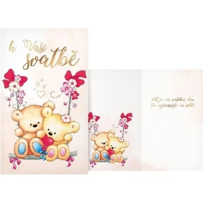 Svatební přání s obrázkem zamilovaných medvídků. Svatba je příjemná a mimořádná událost a je začátkem nové etapy života. Mezi svatebními dary by nikdy nemělo chybět i přání...