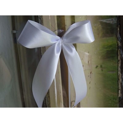 Jednoduché mašle, které nádherně dozdobí auta svatebčanů, jsou vyrobeny z atlasové (saténové) jednolící stuhy šíře 38 mm. Připevnění: bílá atlasová stužka na zadní části mašle...