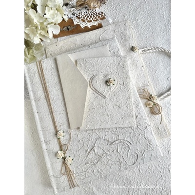 Krásná sada 3v1 z ručního papíru obsahuje klasické fotoalbum obalené do ručního papíru s kokosem a luxusní přání ve vel. 15x20,5 cm včetně obálky a to vše do velké dárkové...