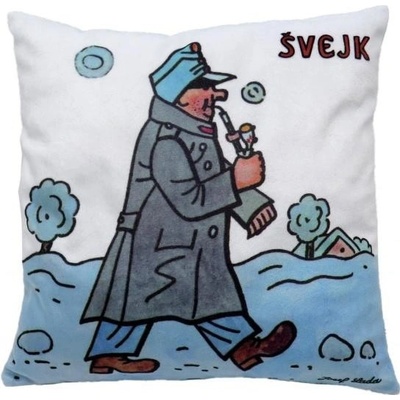 Měkký polštářek s motivem dobrého vojáka Švejka od Josefa Lady, vhodný do postýlky, na cesty i jako dekorace. Materiál mikrovelur, obrázek tisk, náplň duté vlákno. Pratelný....