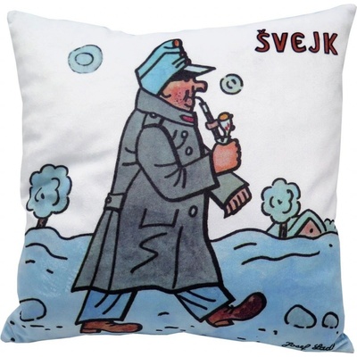 Měkký polštář s motivem dobrého vojáka Švejka od Josefa Lady, vhodný na cesty i jako dekorace. Materiál mikrovelur, obrázek tisk, náplň duté vlákno. Pratelný. Praní na 30°C,...