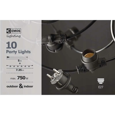 EMOS Lighting Spojovací světelný řetěz E27 DCPZ01 START SET, 7,35 m, černý Startovací sada světelného řetězu obsahuje světelný řetěz a přívodní kabel pro připojení do...