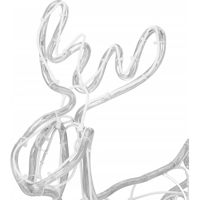 Tato nádherná vánoční světelná dekorace v podobě soba se saněmi vnese do vaší zahrady nebo domu kouzelnou sváteční atmosféru. Konstrukce je z kovu, osazená kvalitní LED světelnou hadicí v barvě studené bílá, která vytváří jasný a elegantní efekt. Díky venkovnímu krytí...