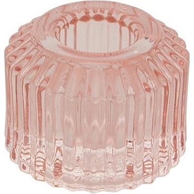 Svetle růžový mini skleněný žebrovaný svícen bude ideální pro každou párty. Ať už jde o výzdobu svatby, křtin nebo narozenin, obklopený vázami, naplněnými sušenými květinami...