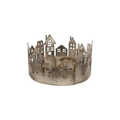 Dekorační adventní svícen.\nRozměry : průměr 16 cm, výška 8,5 cm.\nBarva : hnědo zlatá.\nMateriál : kombinace kov, dřevo.\n