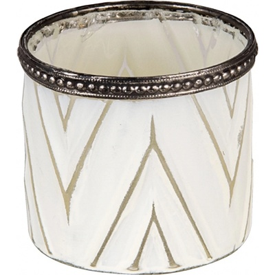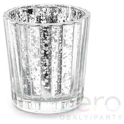 Svícen skleněný na čajovou svíčku s žíhaným efektem :Průměr: 5,5 cmVýška: 6 cmBarva: stříbrná (viz foto)