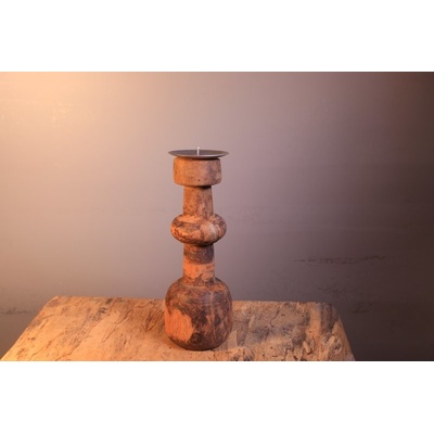 Starý svícen z Jávy 27 cm vysoký, recyklované teakové dřevo a kov.