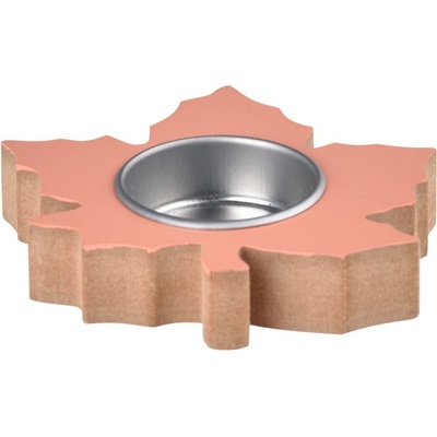 Dřevěný svícen ve tvaru javorového listu na čajovou svíčku v pastelově oranžové barvě. Ozdobte svůj interiér podzimními barevnými svícny ve tvaru listu. Skvěle vypadají v...