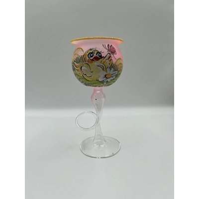 Skleněný svícen ruční výroby s Velikonočním motivem, vhodný na čajovou svíčku. každý kus je originál. Výška 18 cm.