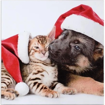 Moderní, dekorativní svítící obraz (1 LED) vyzdobí a zútulní Váš interiér. Materiál - tisk na plátně, dřevěný rám, velikost obrazu - 30 x 30 cm. Potisk "KOČKA A PES".