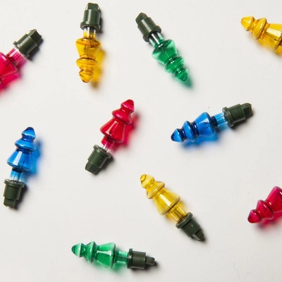 Tradiční skleněná žárovka ruční výroby pro běžného zákazníka je odběr možný již od 1 ks, velkoobchodní balení obsahuje 20 ks žárovek, mix všech barev napětí: 20 V proud: 0,1...
