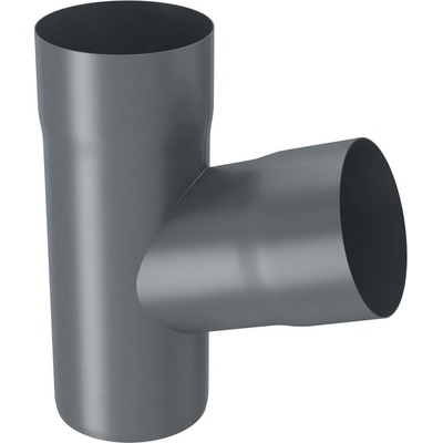 Odbočka kruhových svodů pro svod 100 x 100 mm, úhel vrchního sklonu 72°. Délka kusu 248 mm. Materiál: lakovaná pozinkovaná ocel. Antracitová.