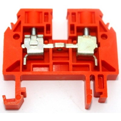 Řadová svorka RS 10/6 červená na DIN lištu pro spojování elektrických obvodů malého a nízkého napětí měděnými pevnými vodiči 0,35 mm2 - 10 mm2 a ohebnými vodiči 0,5 mm2 - 6 mm2.