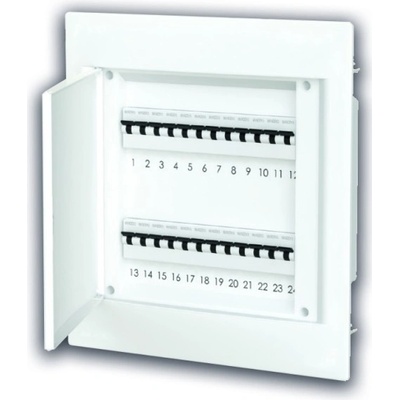 Nástěnná rozvodnice série DINAMIC s prostorem pro osazení jistících prvků. Rozvodnice s 12 moduly DIN, krytí IP40, bílá skříň, bíle dveře, svorkovnice N/PE. Rozměry...