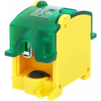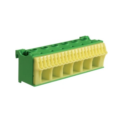 Můstek PE 15 (svorkovnice 15x16mm2), nekrytý IP00, zelený, 63A, na DIN, rozměr 108x23x28mm.