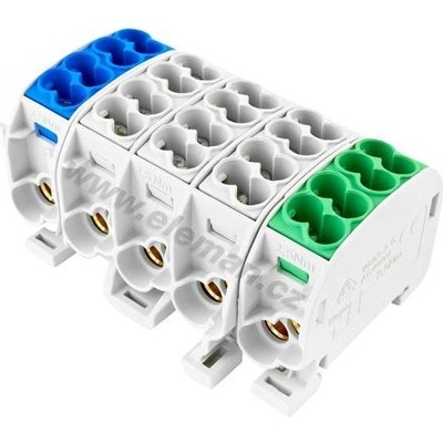 Eleman Svorka univerzální RKA 50 1/6 PE, 150A, 1pól. (6x vstup), AL/CU, zelená, na DIN/na panel