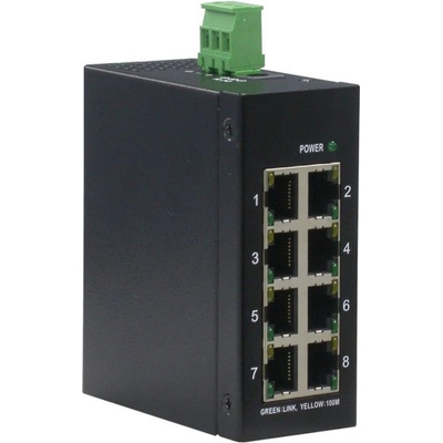 Miniaturní 8 portový Ethernet přepínač pro sítě 10/100Mbps v provedení pro průmyslové použití.; Použití: Kompaktní ethernet přepínač v kovovém provedení pro zvětšení počtu...