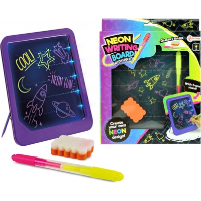 Tabulka na psaní a kreslení se stojánkem, fixem a pěnovou gumou, se světlem. Vytvoř si svoje neonově zářící dílo! Rozměry balení cca 21 x 26 cm.