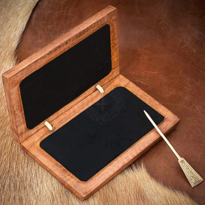 Římská vosková tabulka Diptych s mosazným rydlem – Antická psací souprava Tabula Rasa: Piš, smaž a znovu piš Tato psací souprava není jen mrtvou dekorací, je plně funkční....