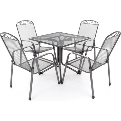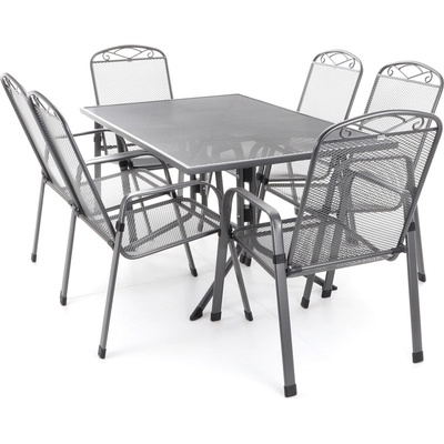 Zahradní stolová sestava ZINGST 6-140 obsahuje 6 pohodlných, stohovacích křesel (ZINGST) a stůl délky 140cm Je vyrobena z tahokovu německou společností MFG (Mecklenburger...