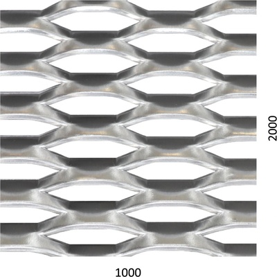 Hliníkový tahokov, kosočtvercové oko: 44x12mm, můstek: 5mm Šířka:: 2000mm, Výška:: 1000mm