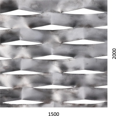 Tahokov Al, kosočtvercové oko: 44x12mm, mostík: 5mm (1500x1000x2mm), orientace oka: rozměr oka 44mm je rovnoběžná s rozměrem tabule 1500mm
