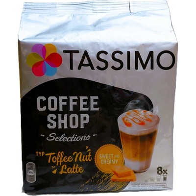 Krémové latte s karamelovo‑oříškovým šmrncem připravené rychle v Tassimo — malý, ale intenzivní zážitek.