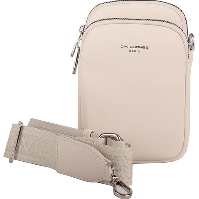 Dvouoddílová malá crossbody kabelka - taštička - David Jones v krémové barvě - opatřena moderním látkovým popruhem s potiskem - na čele taštičky je umístěno stříbrné logo...