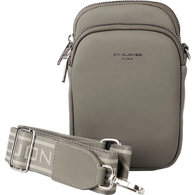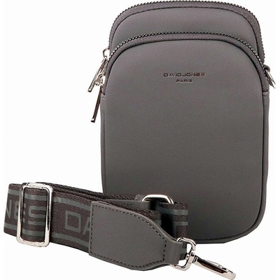 Dvouoddílová malá crossbody kabelka - taštička - David Jones v šedé barvě - opatřena moderním látkovým popruhem s potiskem - na čele taštičky je umístěno stříbrné logo...