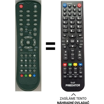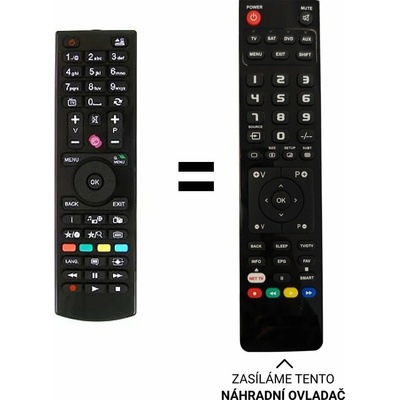 Nahrazuje černý i bílý ovladač. Náhradní dálkový ovladač jiného vzhledu BEZ NUTNOSTI ZADÁVAT KÓDY pro televizory Technika. Například 40904ADLEDFHDSS14, 50" 904A DLED FHD SS14.