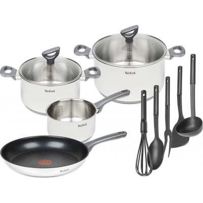 Popis produktu: sada obsahuje 11ks, robustni a trvanlive nerezove nadobi, rendlik 16 cm, kastroly s poklici 20/24cm, panev 28 cm, vidlice, metla, naberacka, obracecka, lzice,...