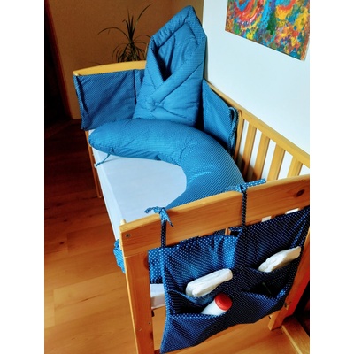 KHC Kojící těhotenský polštář Zavinovačka Mantinel do postýlky Kapsář Puntíčky na modré